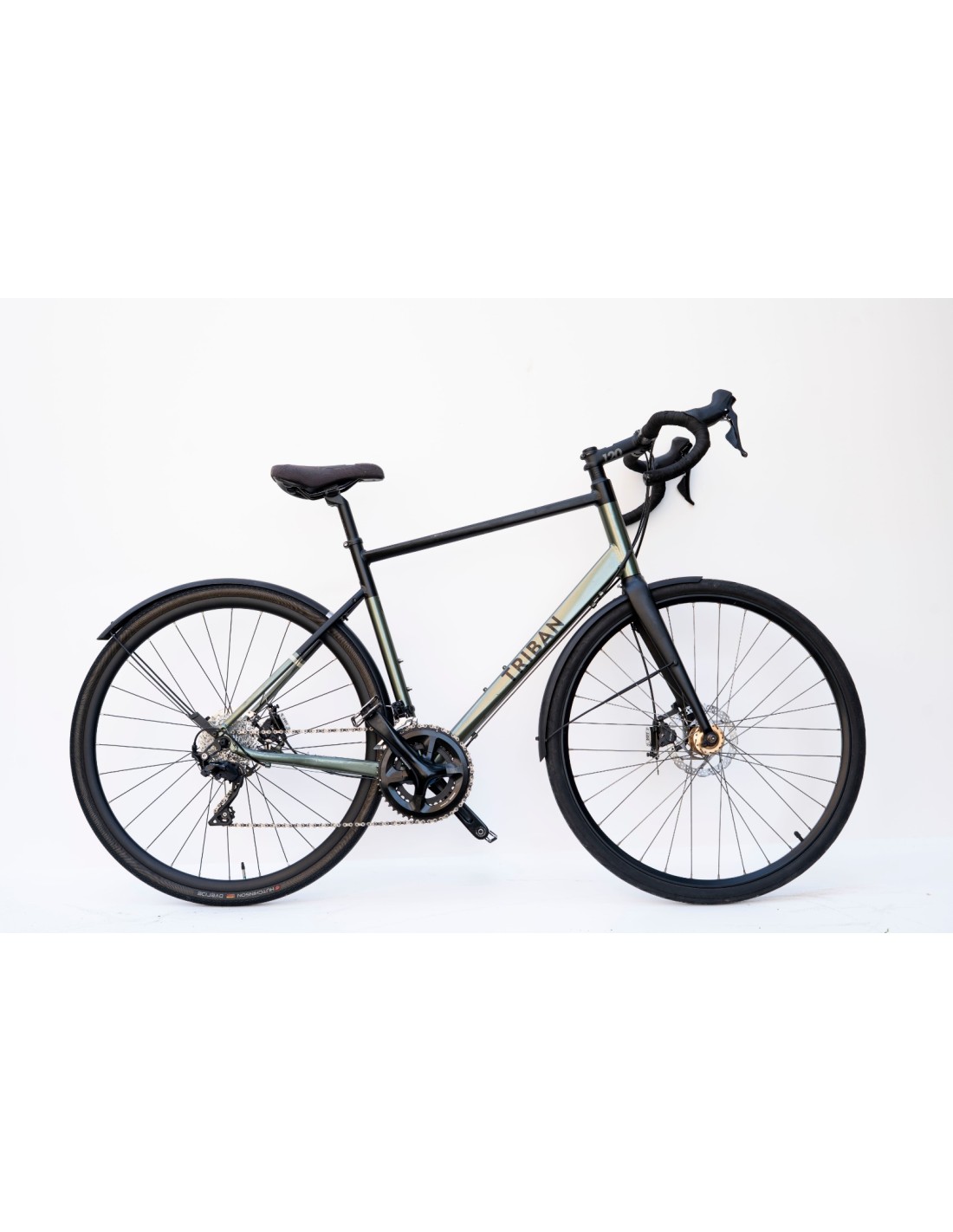 -Guidon ergonomique Triban en aluminium pour une meilleure prise en main et un excellent confort.