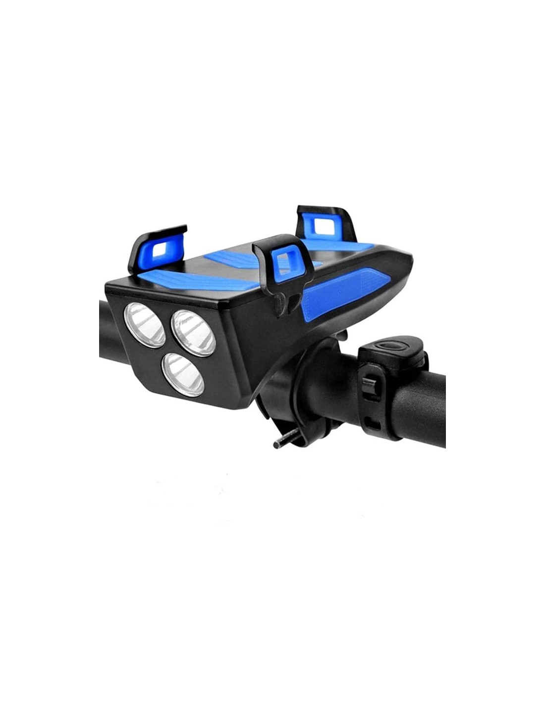 Lampe de poche pour vélo 250 lumens, klaxon de vélo, support de téléphone, batterie externe, éclairage avant de vélo, rechargeable par USB, étanche, avec 3 modes d'éclairage, 5 sons, convient pour vélo de route et de montagne .