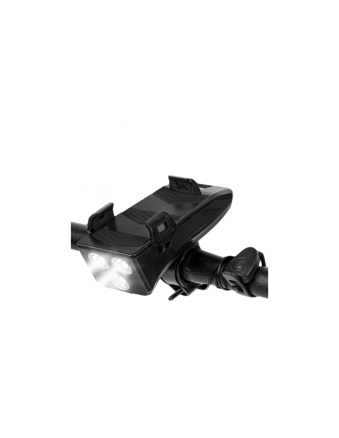 Lampe de poche pour vélo 250 lumens, klaxon de vélo, support de téléphone, batterie externe, éclairage avant de vélo, rechargeable par USB, étanche, avec 3 modes d'éclairage, 5 sons, convient pour vélo de route et de montagne .
